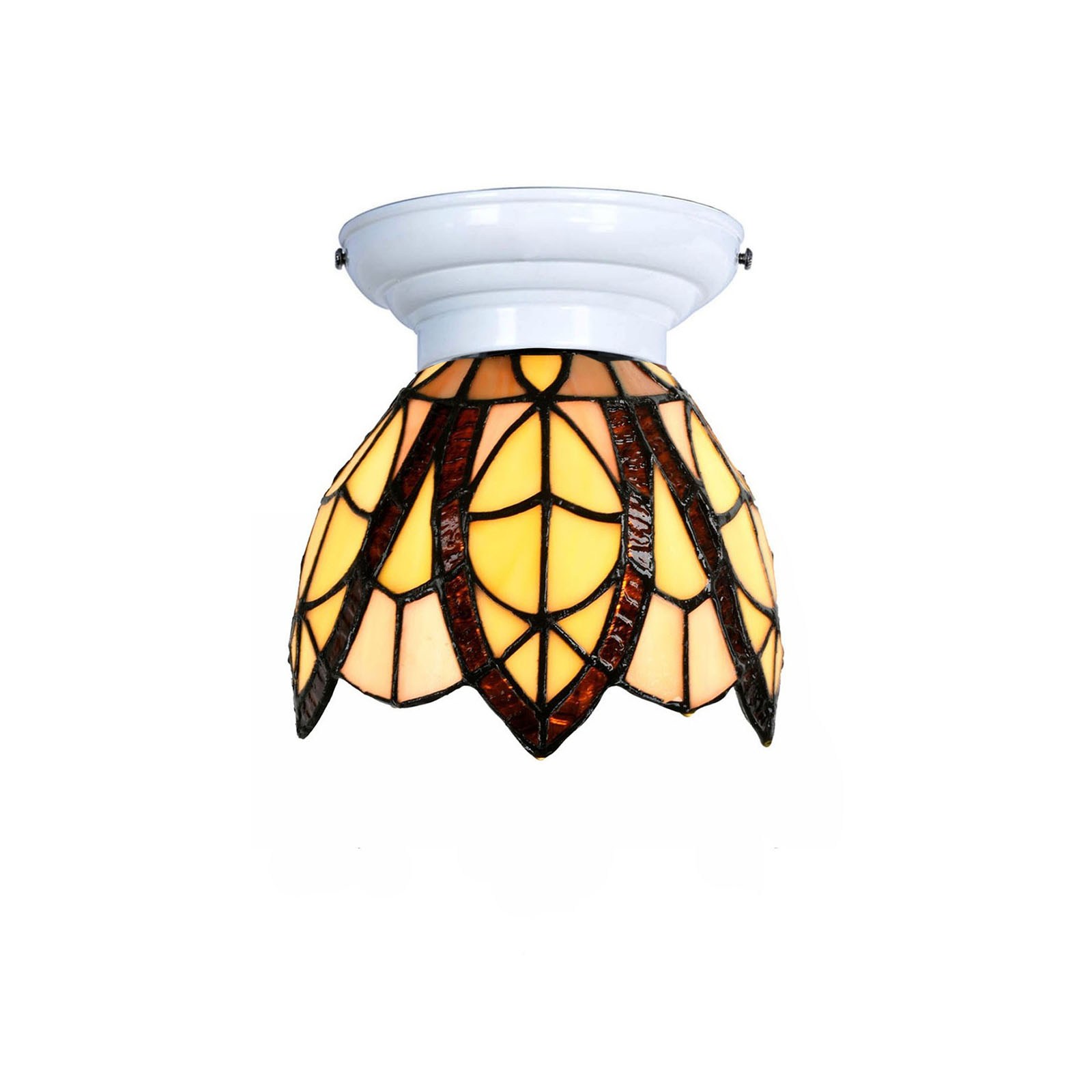 Like a flower in full bloom, this Tiffany pendant lamp hangs from the ceiling.