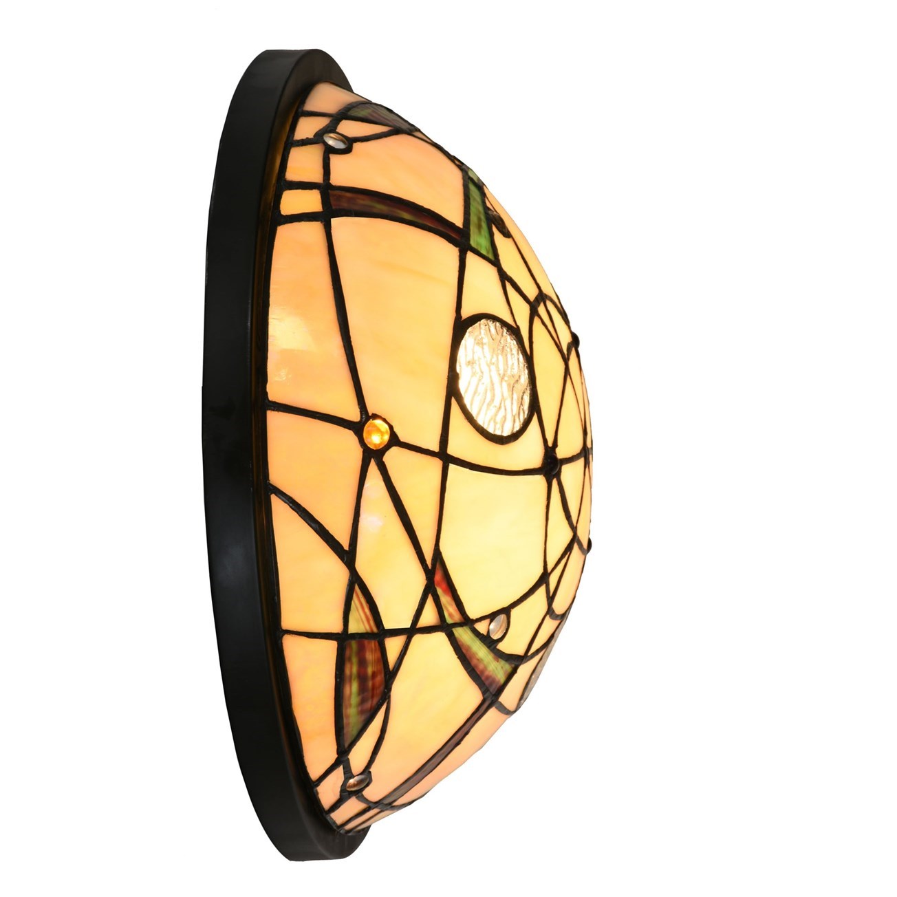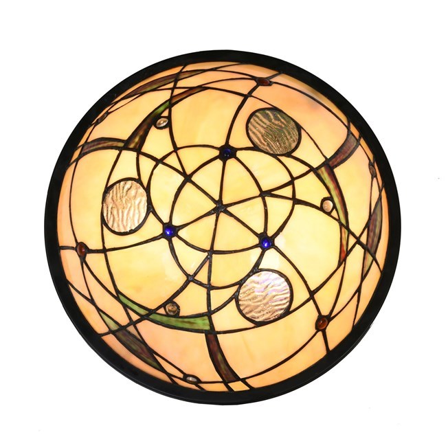 Tiffany lamp for atmospheric subtle lighting. A stunning piece of jewellery, this eye-catcher is reminiscent of the starry sky. The round smooth geometric shape is broken by a graceful interplay of lines. A work of art in itself!