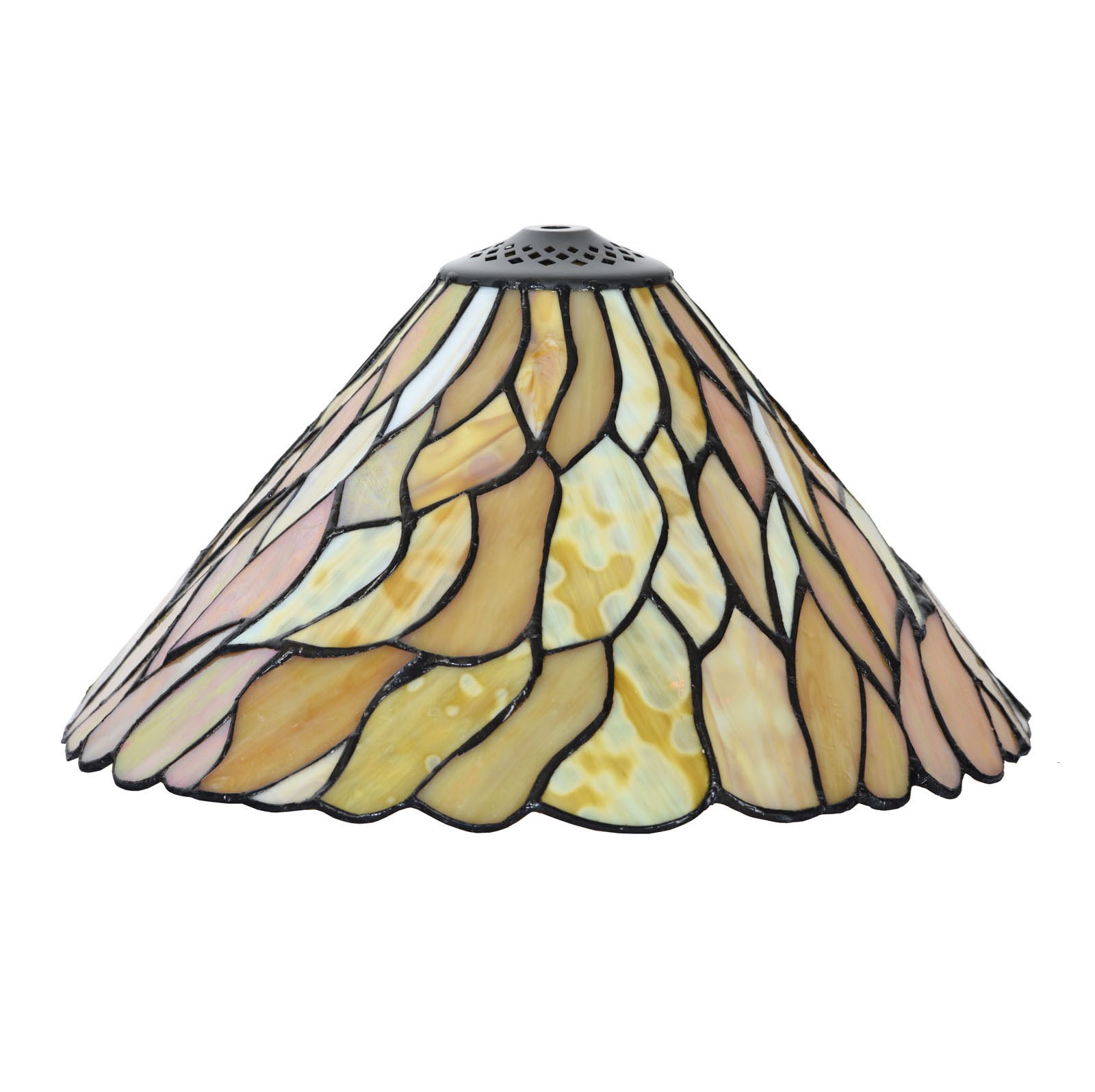 Naturally shaped pieces of glass in mysterious green make this Tiffany glass shade a true eye-catcher. The warm bronze and green tones of this glass lampshade are inspired by the auspicious gemstone Jade.