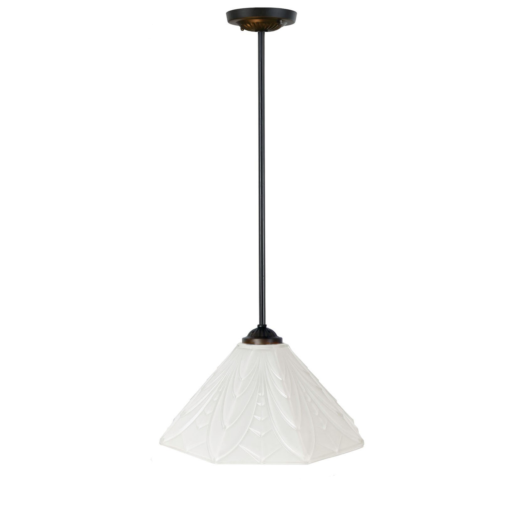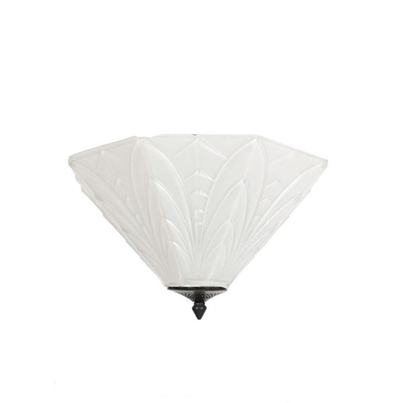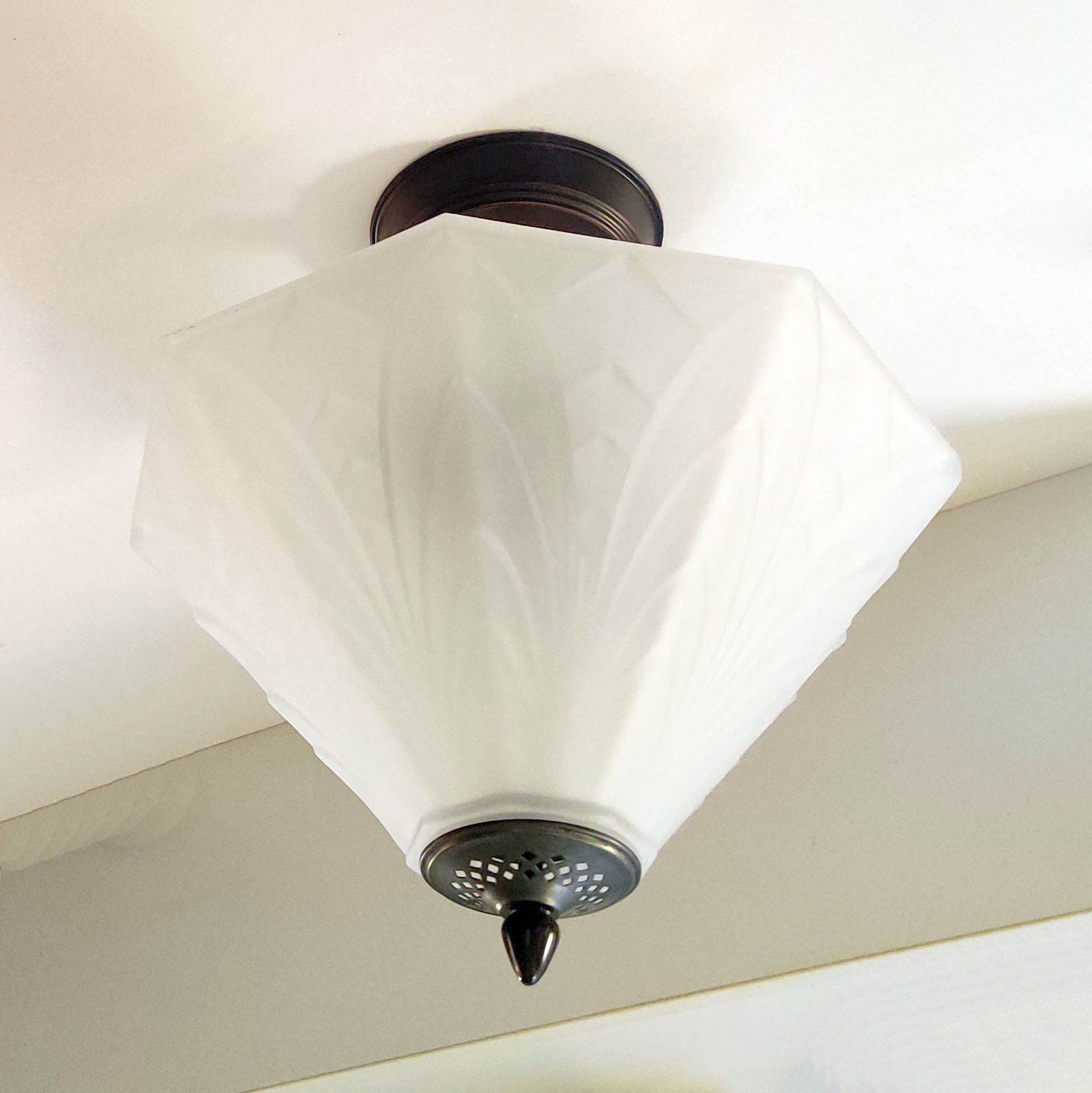 Beautiful patterns, reminiscent of a fan of feathers, spread gracefully over the Art Nouveau glass shade. The model is made of etched (matted) glass and gives a soft look. Beautiful and exclusive.