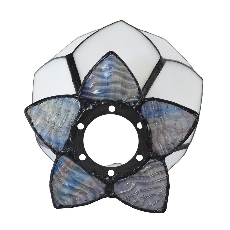 Purity, purity, and perfection are embodied in this flower: The white glass is serene. The combination with the transparent petals at the base is stunning: The shades of blue, green, and brown reflect the water.